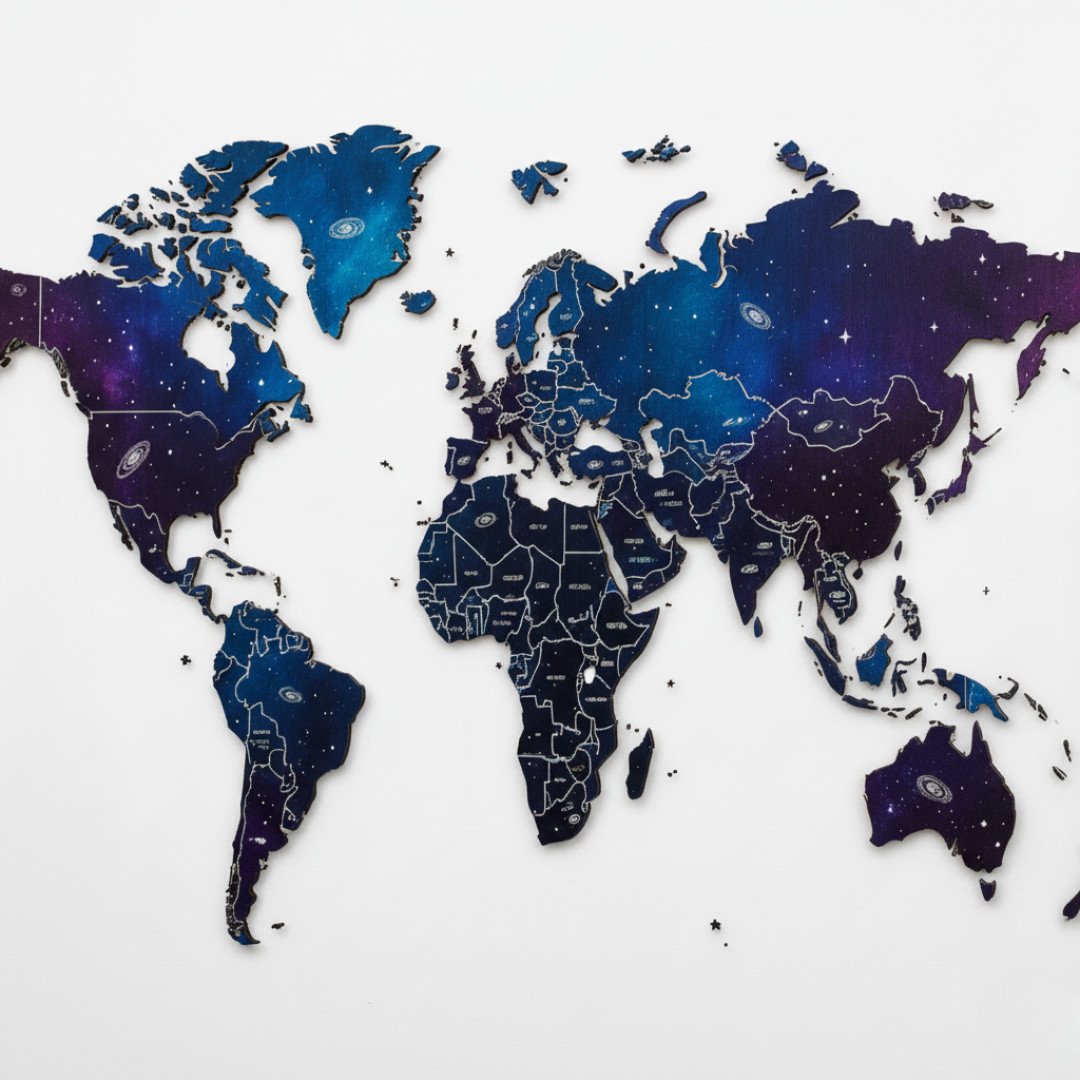 • Stylish 3D Wooden Map Design